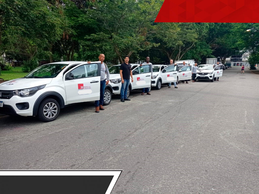 Para atendimento as obras, as equipes deslocam-se em veículos que atendam às necessidades de pessoal, equipamentos e exigências de contrato.